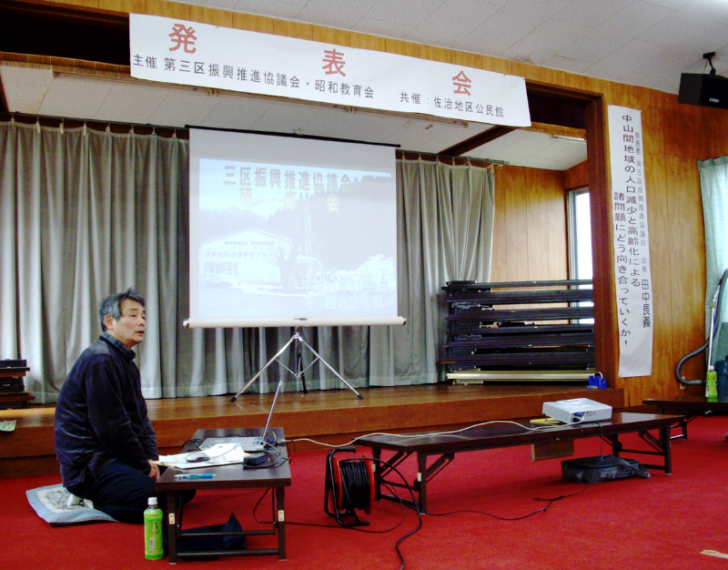 ![]() 田中会長による「中山間地域の人口減少と高齢化による諸問題にどう向き合っていくか!」をテーマに各指標を使っての講演会でした。 |