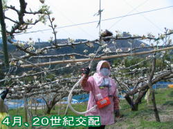 ![]() ![]() 昭54年、ある農家が自家結実する梨を発見。発見者の名を冠し、おさ20世紀と命名され人工交配から解放される目途がついた。そして、平2年、(独)果樹研究所(つくば市)が黒班病に強い、ゴールド20世紀を作り、1999年には、県園芸試験場と果樹研究所が共同で両方の性質をもつ究極のおさゴールド20世紀を完成させた。農薬散布が抑えられ、農家、消費者双方にメッリトをもたらした。当園でも近年中におさゴールドに変わります。一方、国の果樹研究所は、2001年あきづき、2003年王秋梨と、素晴らしい梨を世に出した。究極の20世紀梨、おさゴールドを完成させた鳥取県では、鳥取大学が2006年秋栄(アキバエ)、鳥取県園芸試験場が2008年新甘泉(シンカンセン)など優秀品種を発表した。当園でも増殖中です。 |