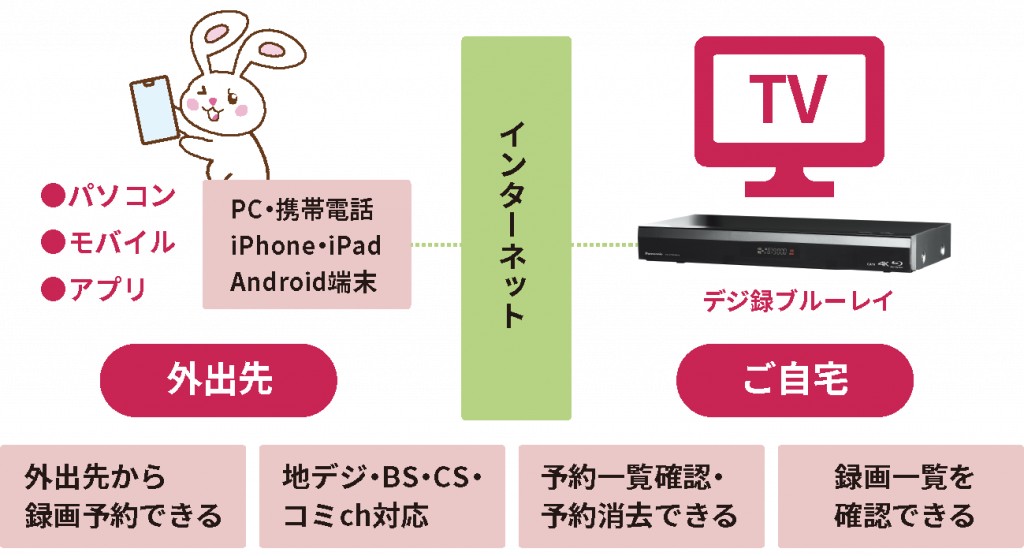 デジ録ブルーレイとインターネット環境があればリモート録画予約ができます!