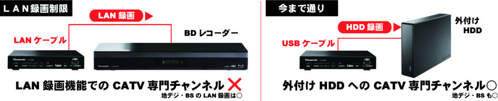 引き続きCATV専門チャンネルのLAN録画をご希望の場合、デジ録STB(有料機種)等への交換が必要になります。